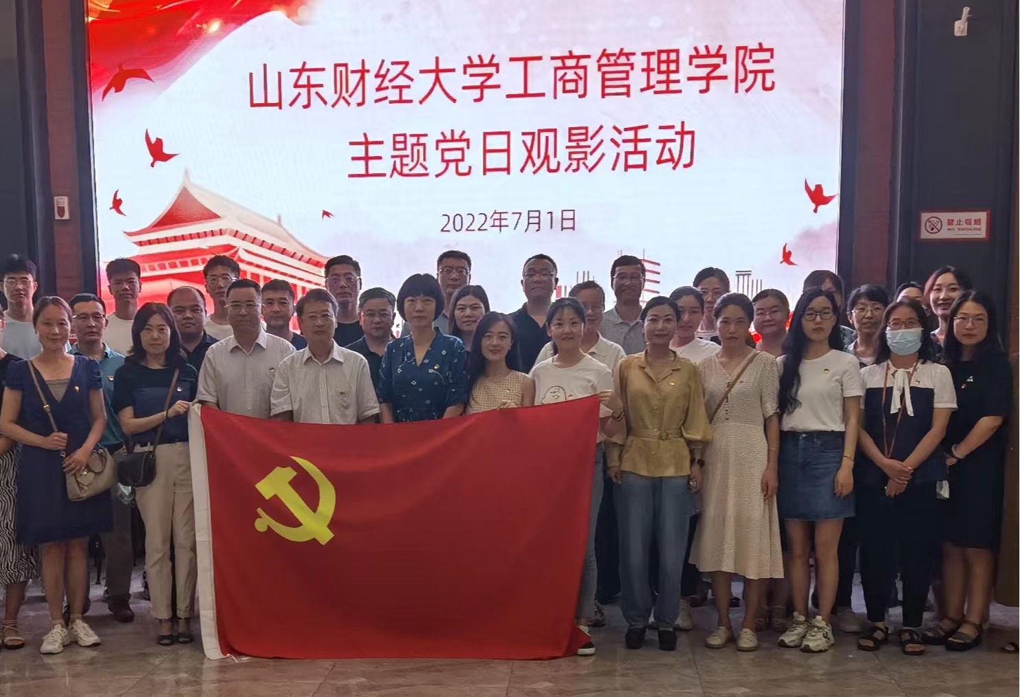 7月1日,工商管理学院举行“迎七一建党日 观看红色电影”观影活动。学校党委副书记韩作生与工商管理学院中层领导干部、教师和研究生党员等一起观看了电影《长津湖之水门桥》。