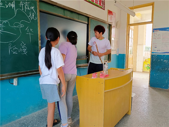 为使同学们能够学以致用,支教组的成员开展地理趣味课堂,以自身的旅游经历为背景,向同学们讲述不同地区的地理知识,随之向同学们展开相关提问,不仅提高了同学们融入课堂的积极性,更提高了他们对地理的热爱。