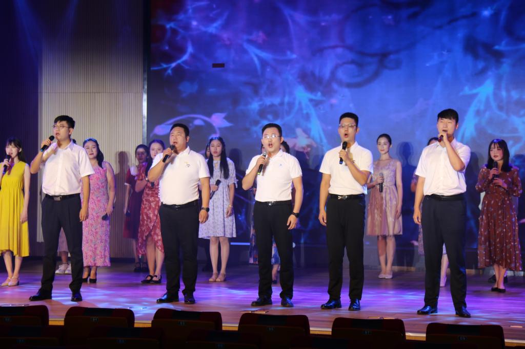 歌会尾声,由国际经贸学院、大学生艺术合唱团和全体演员一同唱响校歌《梦想花开》。
