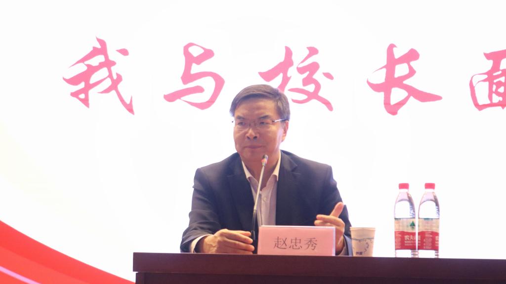 10月25日下午,国际经贸学院“我与校长面对面”2022级新生交流主题活动在圣井校区举行。校长赵忠秀与国际经贸学院2022级全体新生齐聚大学生活动中心报告厅,面对面座谈、零距离交流,共话校园生活,畅谈家国情怀。