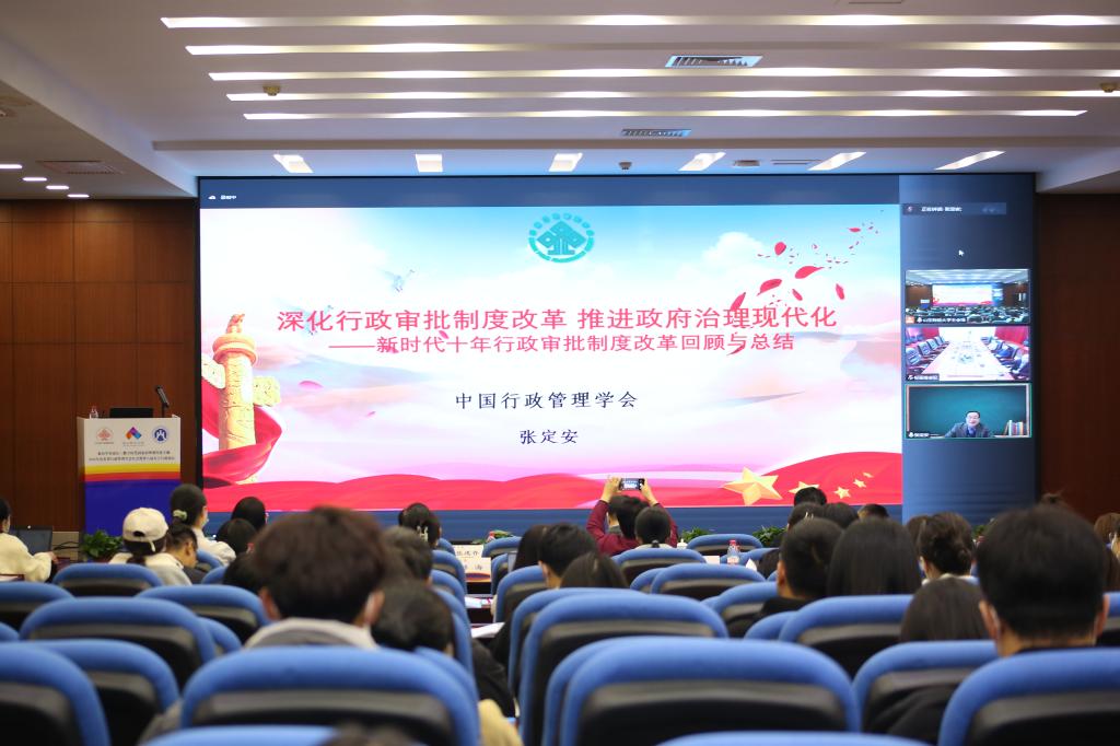中国行政管理学会副秘书长、《中国行政管理》杂志社社长张定安研究员,中央党校公共管理教研部主任王满传教授分别以“深化行政审批制度改革 推进政府治理现代化”“学习贯彻党的二十大精神 加快建设数字政府”为主题发表了主旨演讲。山东财经大学公共管理与法学学部部长、山东省行政管理学会副会长张红凤教授主持开幕式及主旨演讲。