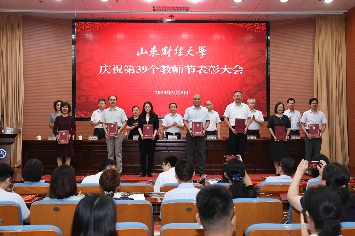 金风送爽,硕果飘香。9月8日上午,山东财经大学庆祝第39个教师节表彰大会在燕山校区隆重举行,慰问从事高等教育满30周年的在职教职工,表彰教学、科研、党建思政工作的先进典型。校党委书记王邵军出席会议并讲话,校党委副书记张培国主持会议,副校长陈晓兰、张新,纪委书记、监察专员王福岱,副校长谢申祥,校党委委员、统战部部长邓迎迎出席会议。
