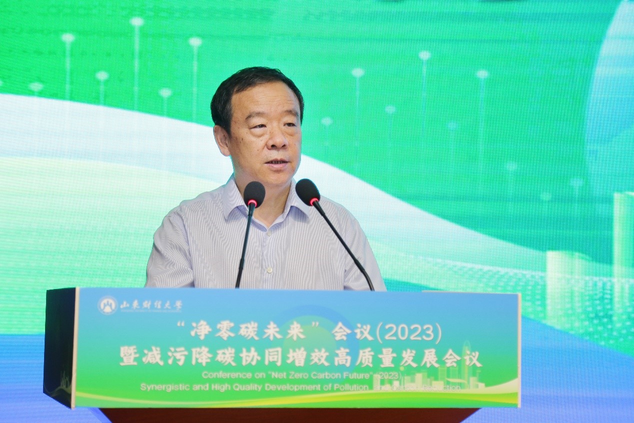 9月19日,由山东财经大学主办的“净零碳未来”会议(2023)在我校国际交流中心成功举办。本次会议以“减污降碳协同增效高质量发展”为主题,德国工程院院士、德国联邦“未来能源”专家委员会主席、波鸿鲁尔大学教授吕安迪(Adreas Loeschel),对外经济贸易大学校长赵忠秀,蒙阴县委副书记、县长苗运全等嘉宾出席会议;学校党委书记王邵军出席会议并致辞。日本名古屋大学教授、中国国际碳中和经济研究院联席院长薛进军、马丁路德·哈勒维腾贝格大学教授卜玉洗(Ulrich Blum)、拉尔夫·维尔斯波恩(Ralf Wehrspohn)、山东大学特聘教授张宁,上奥地利应用科学技术大学教授安德里亚斯·泽特纳线上参会。会议开幕式由中国国际低碳学院执行院长王璟珉主持。