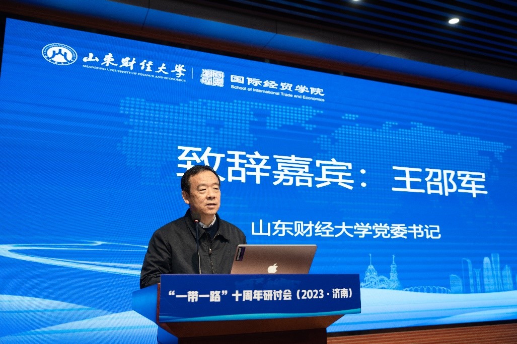 11月10日-12日,由山东财经大学主办,山东财经大学国际经贸学院、“一带一路”经济发展研究中心和山东省社科理论重点研究基地-对外开放与自贸区建设研究基地共同承办的“一带一路”十周年研讨会在我校举行。研讨会以“‘一带一路’贸易与国际合作”为主题。校党委书记王邵军出席会议并致辞。山东社会科学院党委书记、院长袁红英,山东省发展和改革委员会二级巡视员冯立东,济南高层次人才发展促进会会长、欧亚院士凌沛学,德州学院副校长李甲亮等专家学者受邀出席会议。副校长谢申祥主持会议。