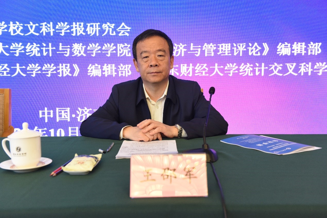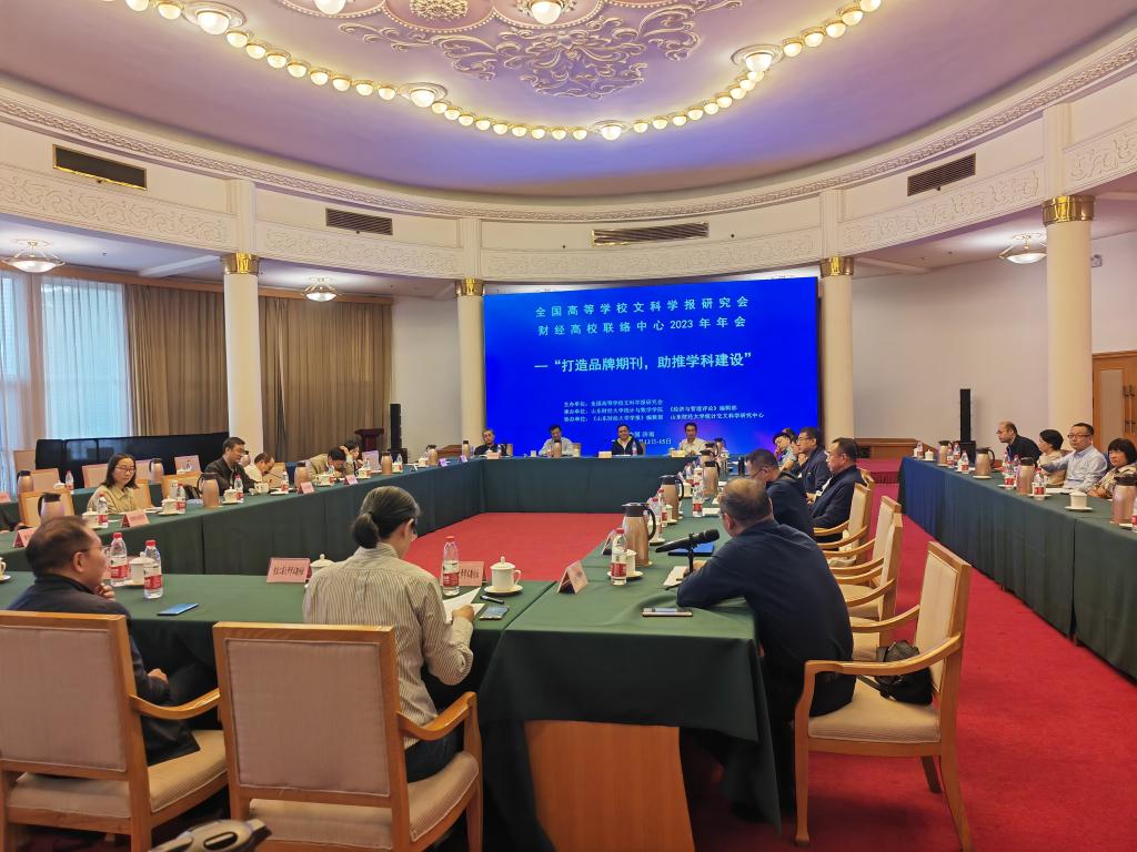 10月13日—15日,由我校承办的全国高等学校文科学报研究会财经高校联络中心2023年年会在济南南郊宾馆召开。校党委书记王邵军出席开幕式并讲话。全国高等学校文科学报研究会理事长、《北京大学学报(哲学社会科学版)》常务副主编刘曙光,上海财经大学期刊社社长郑春荣等专家学者受邀出席大会并作学术分享。本次年会以“打造品牌期刊,助推学科建设”为主题,来自全国财经高校的60多家财经期刊的130余名代表参加大会。