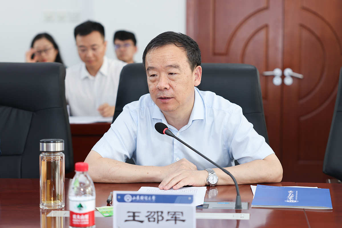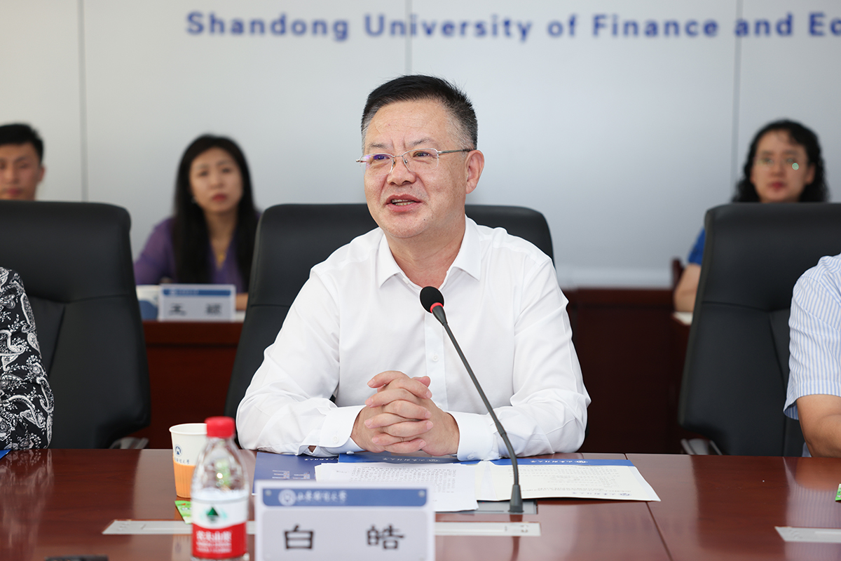 王邵军对省委党校(山东行政学院)长期以来对山东财大的支持表示感谢,对白皓一行的到来表示热烈欢迎,对双方建立战略合作表示祝贺。他介绍了近年来学校在学科建设、人才培养、科学研究、服务国家战略和地方发展取得的系列成就。他指出,省委党校作为全省培训党员领导干部的主渠道,是重要的哲学社会科学研究机构和新型智库,此次签约是两校充分发挥各自优势,实现资源共享、优势互补,携手服务山东省经济社会高质量发展的重大举措。他强调,两校以此次合作为契机,建立长效协作机制,围绕经济社会发展需求,搭建更广泛、多层次、全方位、高水平的战略合作平台,为实施人才强省战略和创新驱动发展战略,推动文化经济强省建设作出新的贡献。